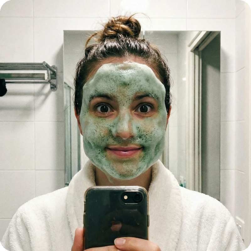 Ce léger picotement, c'est l'effervescence des micro-bulles d'oxygène qui s'activent pour déloger les impuretés de vos pores. C'est la preuve que le masque travaille.