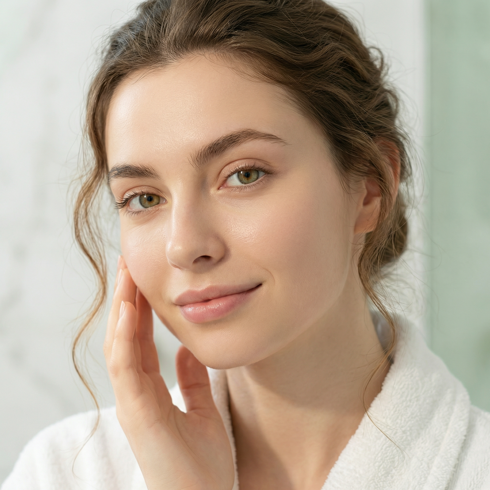 Grain de peau plus lisse et régulier. Pores moins visibles.